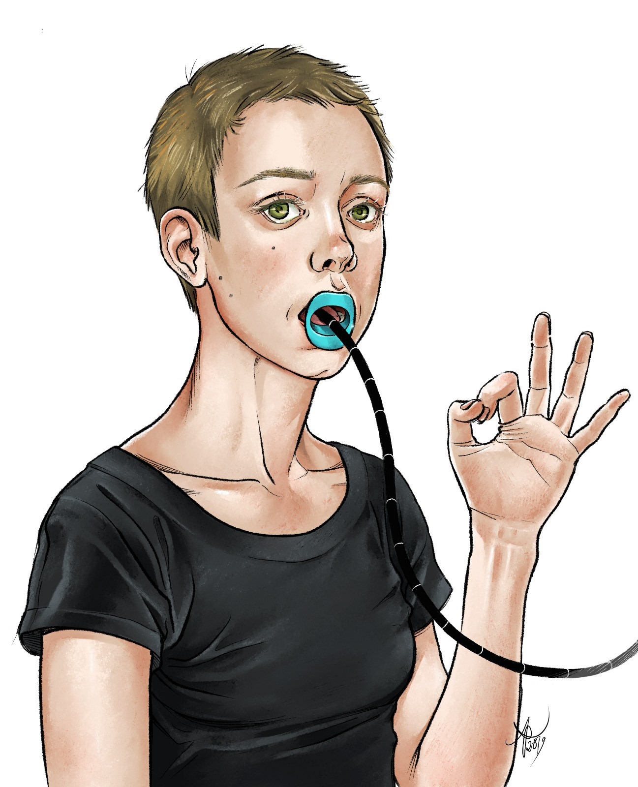 Self portrait with a tube